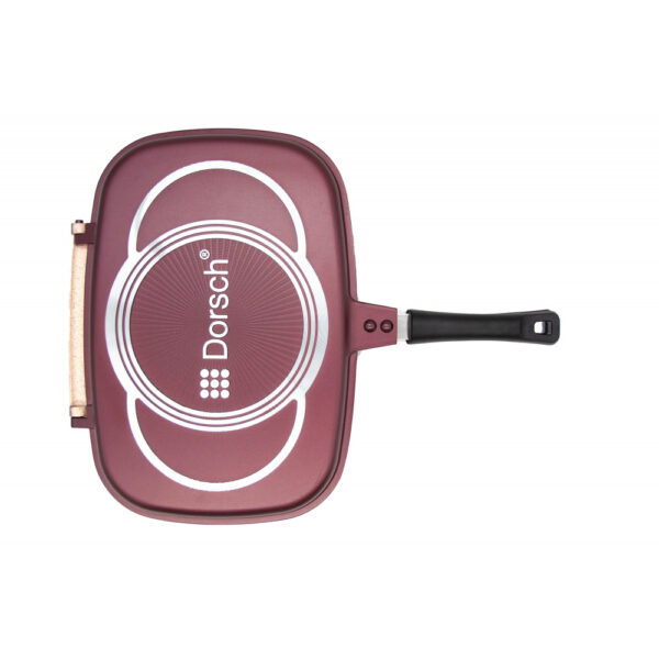 Premium dobbeltsidet grillpande på 36 cm er fremstillet af trykstøbt aluminium med keramisk belægning, som giver en naturlig nonstick-effekt og sikrer jævn varmefordeling. Den dobbeltsidede konstruktion gør det nemt at stege og vende mad uden spild, mens de rillede overflader giver flotte grillmærker på kød, grøntsager og fisk. Velegnet til alle komfurtyper – også induktion. Fri for PFAS, PFOA og PFTE, hvilket gør panden til et sundt og sikkert valg i køkkenet. Vaskes op i hånden for at skåne belægningen. Tåler ikke opvaskemaskine.