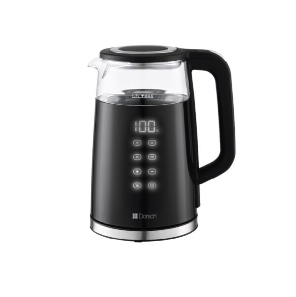Dorsch Electric Kettle med en kapacitet på 1,7 liter kombinerer kraftfuld varmeeffekt på 1850-2200W med moderne teknologi. Den har touch screen og digitalt display, som gør det nemt at indstille temperatur og overvåge vandets opvarmning. Perfekt til te, kaffe eller hurtig kogning af vand til madlavning. Elegant design og praktisk håndtering gør kedlen til et stilrent og funktionelt køkkenapparat.