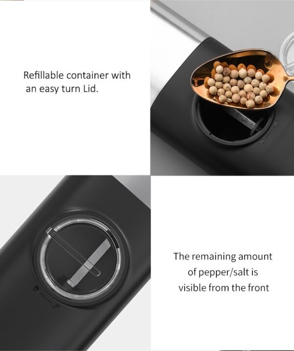 Dorsch elektrisk peber- og saltkværn gør det nemt at krydre dine retter præcist og hurtigt. Den automatiske funktion sikrer jævn kværning med minimal indsats, og den justerbare formalingsgrad giver fuld kontrol over kornstørrelsen. Perfekt til både hverdagsmadlavning og fine middage.