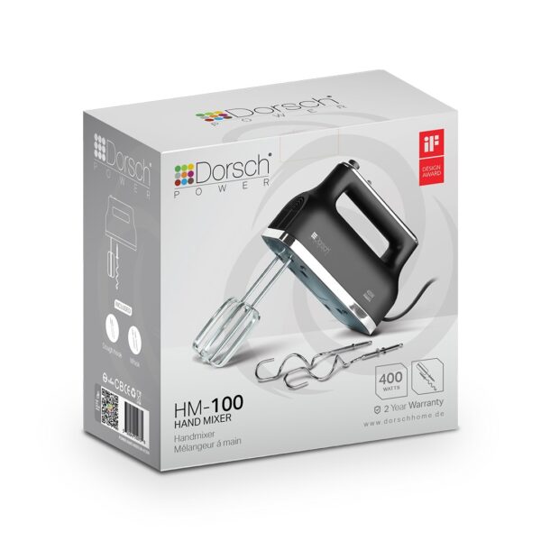 Dorsch håndmixer med en effekt på 400W er ideel til piskning, æltning og blanding af ingredienser til kager, brød og desserter. Den kraftfulde motor sikrer jævn og effektiv bearbejdning, og de medfølgende piskeris og dejkroge giver fleksibilitet i køkkenet. Ergonomisk design gør håndteringen nem og komfortabel.