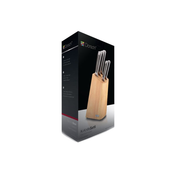 Dorsch Hollow Knivsæt med 6 dele leveres med praktisk træknivblok og indeholder alsidige køkkenknive til daglig madlavning. De skarpe blade med huldesign reducerer friktion og forhindrer, at ingredienser hænger fast, hvilket gør skæring nemmere og mere præcis. Ergonomiske håndtag giver komfort og kontrol, mens den elegante træblok sikrer sikker og stilfuld opbevaring.